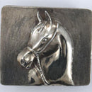 Arabian Horse with Halter Buckle Our second Arabian horse design in a buckle. This sculpted horse has a 3/4 head view with the dished face, alert small ears, in a halter, rather than a bridle. This design also has a pendant version in a large and medium.