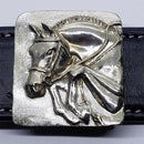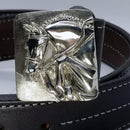 A new addition to our Jumper Horses! The horse is highly sculpted with bridle detail and plaited mane.This buckle fits a 1 1/2 inch wide leather belt. Opposite facing from our Fancy Hunter Jumper Series, this upcoming series will have several medallion sizes. One is already posted [ Jumper on Plaited Reins]. Response has been very excited about this new release. The buckle measures 1 5/8 inches wide x 1 7/8 inches tall. Available in the Silver tone [White Bronze] or our buttery Yellow Bronze. Check out our Leather Page for available belts!