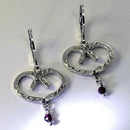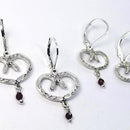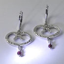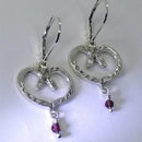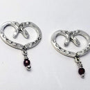 Horse Shoe Heart Earrings Medium with Garnet Bead Drop, Stud OR Lever Back