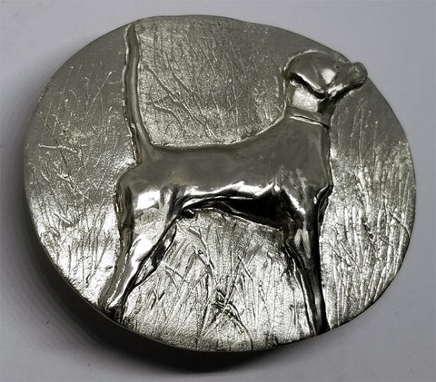Once ready to start a 50% deposit is paid and the wax up begins. Detailed photos will be emailed as the wax pattern progress, and once you approve the final look, the casting is done. I polish and re send photos, and it's time to ship the sample / prototype. Time lines can vary based on the complexity of the design and time of year, but 2-4 + weeks for custom work is average. Curious on the numbers? Example: a buckle to fit a 1 .25 inch leather belt -- art work would start at $150, plus the casting in metal for that typical item [$195 total]. Each custom order is evaluated for cost and a quote is given.