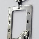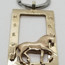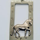 Dressage horse in a piaffe position on a large dressage arena. All the letters surround the arena, so you can practice your test. Fob measures 2 1/2 inches tall x 1 1/4 inch wide. With the steel split ring, this measures 3 3/4 inches overall. Cast in White Jewelers Bronze, or Yellow Bronze. A coveted piece! NOTE--I have been asked about these as a large Pendant....the bronzes used for Buckles and Key fobs have ingredients such that it should not be worn on the skin [ 4% lead ]. If you would like this design as a pendant, it can be cast in the "Ancient Casting [Rose] Bronze" which has -0- allergens. It arrives with a 8 strand woven leather neck cord, and you may choose a length, if other than the 18 inch default length...just leave the size in "Customer Notes" during check out.