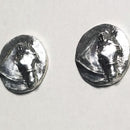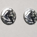 Driving Pony small Lever Back Earrings These earrings are part of the Driving Pony Series. They have the very same bridle and blinder details. They measure 5/8 inch round and are available as lever back earrings or as studs. Sterling Silver OR Rose Bronze [ with gf/sterling as the lever back portion].