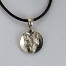 Fox Mask Medium Pendant Medium size of our Fox Mask. The pendant measures 3/4 inch round and 1 inch tall overall with bail. Fox has raised detail and a frosty look. The surrounding area of the fox is a high polish. Sterlig Silver Arrives on a black leather neck cord. Optional chains are available. Or, you may purchase the pendant with no neck cord at all.