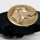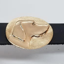 Hound Dog Slide on Leather Cuff Bracelet Fox Hunt Riders LOVE their hounds. Here Tempi has captured the hound profile on a 3/4 inch wide leather cuff. Hound measures 1.5 inches wide x 1 inch tall. Available in our Rose Bronze [ copper color] or Sterling Silver. The leather cuff is dark brown. The closure is a button stud. The average fit is 7 inches. If you need shorter or longer, please email your preferred fit. We also offer a buckle closure. That option is listed with the product choices. If you would like any variay=tion, please add that to the Customer Notes during checkout. Tempi will confirm via email.