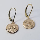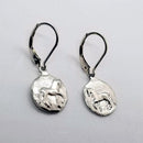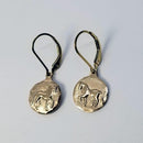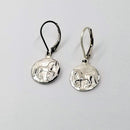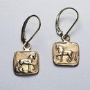 Our Piaffe Medallion Series has a round or squared shape, so Tempi continued this with the earrings. The squared measures 1/2 inch squared and 1 1/8 inch tall overall. The round version measures 1/2 inch round and 1 1/8 inch tall overall. This is a right and left facing pair. There are many variations of this ever popular earring design. Here is a lever back. Shown in Sterling Silver. Also available in our Rose Bronze--with a sealant, so no polishing!! ...... and the lever backs are gf over sterling silver.