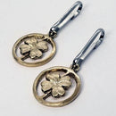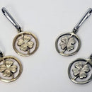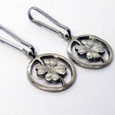 Tempi has made custom Buttons in the past, and this design was resurrected as a Zipper Pull. Here is a fun design with heart shape leaves which have a slight curl to them. The clover stands alone and has a circle around it. This clover measures 3/4 inches round and 1 5/8 inches tall overall. Avilable in Silvertone [ White Bronze] or Yellowtone [ Yellow Bronze], and is a set of 2 pieces.