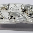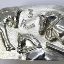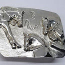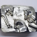 Tempi is very excited to present this 3 horse equestrian design buckle!! I was asked some time ago to create a 3 Phase buckle and this has finally worked out. Tempi has taken our Cross Country Water Jump horse in a medium version, our newer Dressage Horse Profile design, and Tempi's newest Jumper in a medium size. The horses are arranged with a jumper on the right and left and dressage in the center. Each horse is wearing the proper tack for the phase they are perfoming and give a clear representation of the task at hand. We hope you love this!! Buckle measures 2 7/16 wide x 1 3/4 inches tall and fits a 1 1/2 inch wide buckle. This can also be made to fit a 1 1/4 inch wide buckle.....just make that request in "Customer Notes" during check out.