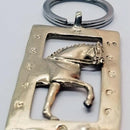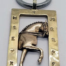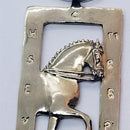 A large size Dressage Arena and all the corresponding letters with a horse captured in a trot position. The horse has fine detail of a double bridle, and braids. You can practice your test following the arena outline. Fob measures 2 3/4 inches tall x 1 1/4 inch wide. With the steel split ring, the fob measures 3 3/4 inches overall. Cast in White Bronze or Yellow Bronze. NOTE--Some customers wanted this design for a large Medallion...and the White Bronze and Yellow Bronze cannot be worn as jewelry due to the 4% lead content. Tempi now offers this piece in our Rose Bronze which has NO allergens and can be worn as jewelry. Tempi recommends our 8 strand woven leather as gorgeous neck wear for this design. The link is here for you, and this is found in our "Leather" page.