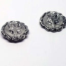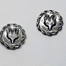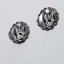 This Fox Mask is a very popular design and the rope edge just raises the design up more. The Fox head is raised and has fine detail to simulate fur, giving it a textured look. The small earring measures 5/8 inch round and the steel post is placed so the earring sits most flattering on your ear. ( The petite version measures 1/2 inch round.) If you need a sterling post or other variation post, please reach out. We can accommodate different post needs. Sterling Silver