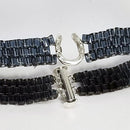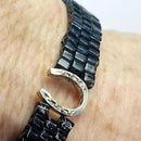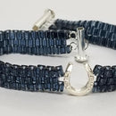 Horseshoe Small on Woven Bead Bracelet This horseshoe measures 1/2 inch tall. Tempi works jointly with another artist who creates the woven bead bracelet and we insert our designs as centerpieces. You will not find these made anywhere else!! The best fit is 1/2 inch larger than your wrist. The average length is 7 inches. The beads are 3-millimeter square and woven with a high tensile cord. The clasp is a "Tube Slide Lock [ see photo]. Any length is available. Please email your wrist size.