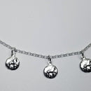 Petite Piaffe Charms on Sterling Chain Necklace One of my personal favorites, this necklace shows the Piaffe Horse in a 3/8 inch round charm x5. The Rolo link necklace measures 18 inches in length and has a jump ring set at 16 inches also. Sterling Silver.