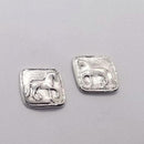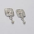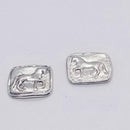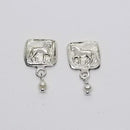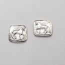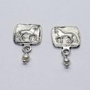 Our Piaffe Series earrings as a stud. The Horse is a raised relief and there is a right and left facing version. The horse is a raised relief as our larger versions of thie design. The squared measures 1/2 inch square and the post is placed in the top 1/3 rd to keep the earring hanging evenly. An additional option is the same earring with a petite pearl drop. Sterling Silver OR Rose Bronze