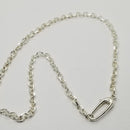 This line of spectacular chains is exclusive here at Tempi. This is a "paper clip" link chain of alternating sterling and diamond-cut sterling. The clasp is a giant fancy lobster claw. SO gorgeous, can be worn alone or with a favorite pendant. Links measure 1/8 inch long x 1/8 inch wide and alternate high polish sterling with a diamond-cut sterling. The clasp is so pretty, is to be worn in front, making it easy to put on, and add a pendant if desired.